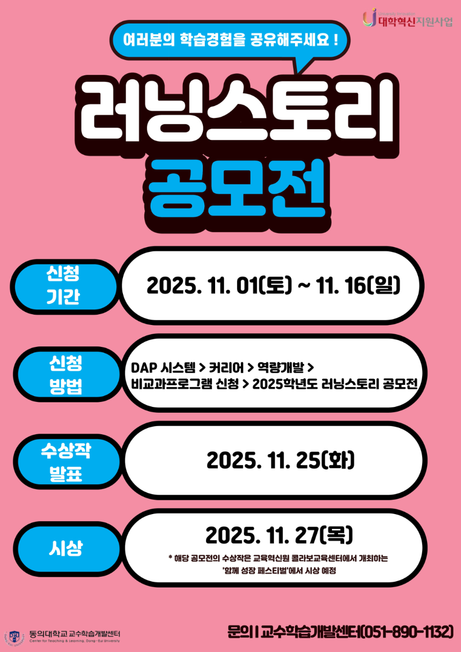 [교수학습개발센터] 2025학년도 러닝스토리 공모전 신청 안내