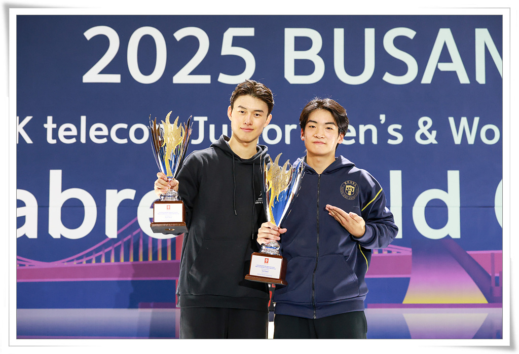 동의대 펜싱부 이준희, 김지환이 지난 1일 부산 경성대 체육관에서 열린 SK텔레콤 국제 주니어 사브르 월드컵 남자 개인전에서 나란히 금메달과 은메달을 나눠 가졌다.